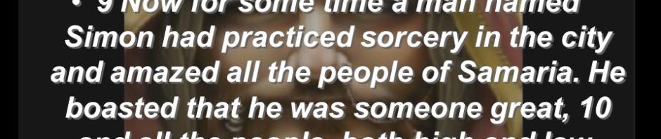 We can be captivated by the flash and flair of the magicians folly seeing something before nothing as the disappearance of one’s will as a trick of the world drawing the weak and willing to become duped by idolatry. The people of Samaria experienced the same in watching Simon astounding the citizens with magical warrants created in the human stature of limitations abound. Praising the LORD’s Name in Word and in Deed shows the thoughts of a devout soul in Philip arousing devotion of the Truth signaled in accepting the washing away of sin by the Baptism of love, faith and hope in Jesus!
